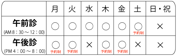 ※ 平日【月・火・木・金】午後診【16:00~20:00】